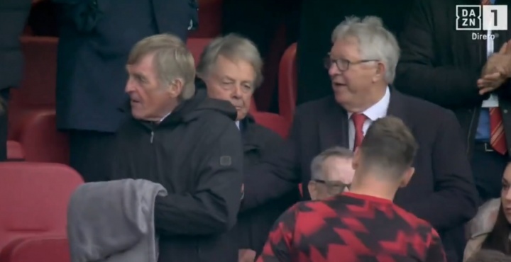 10月20日讯 曼联vs利物浦下半场,镜头给到看台上,弗格森在看台上分享巧克力给达格利什,此时比分曼联1-0领先!